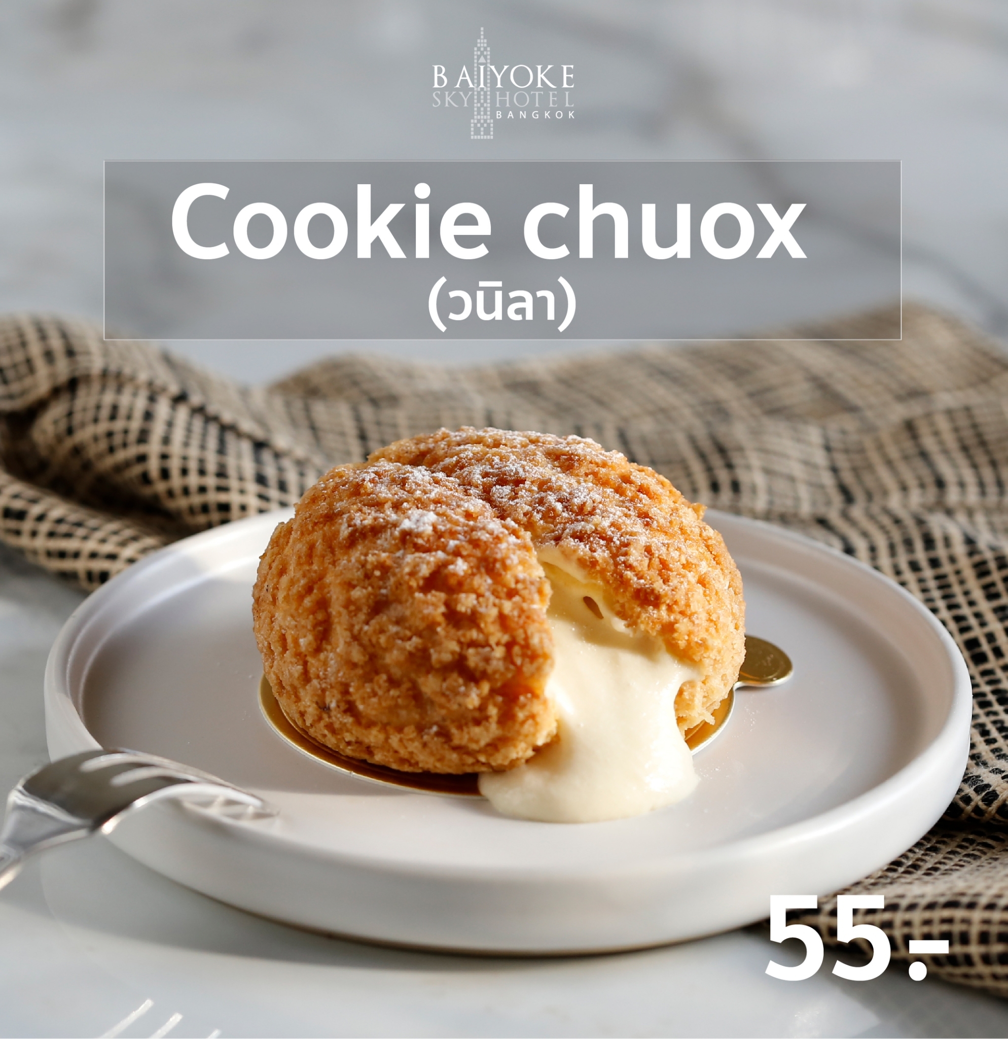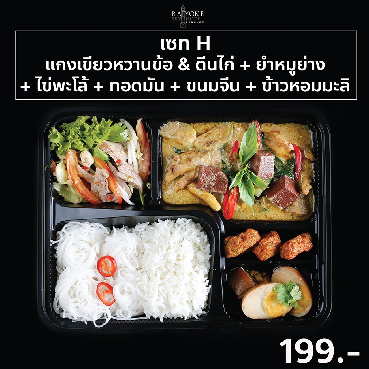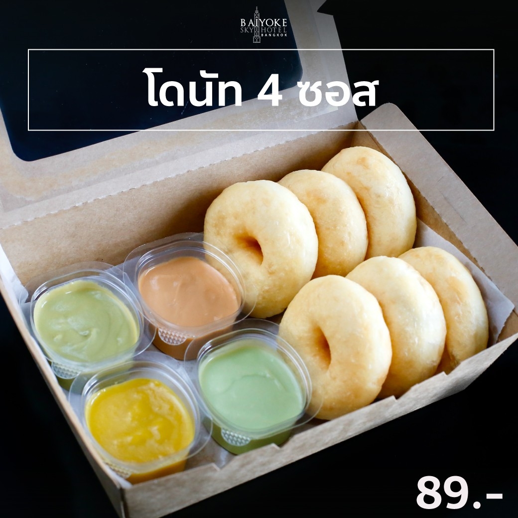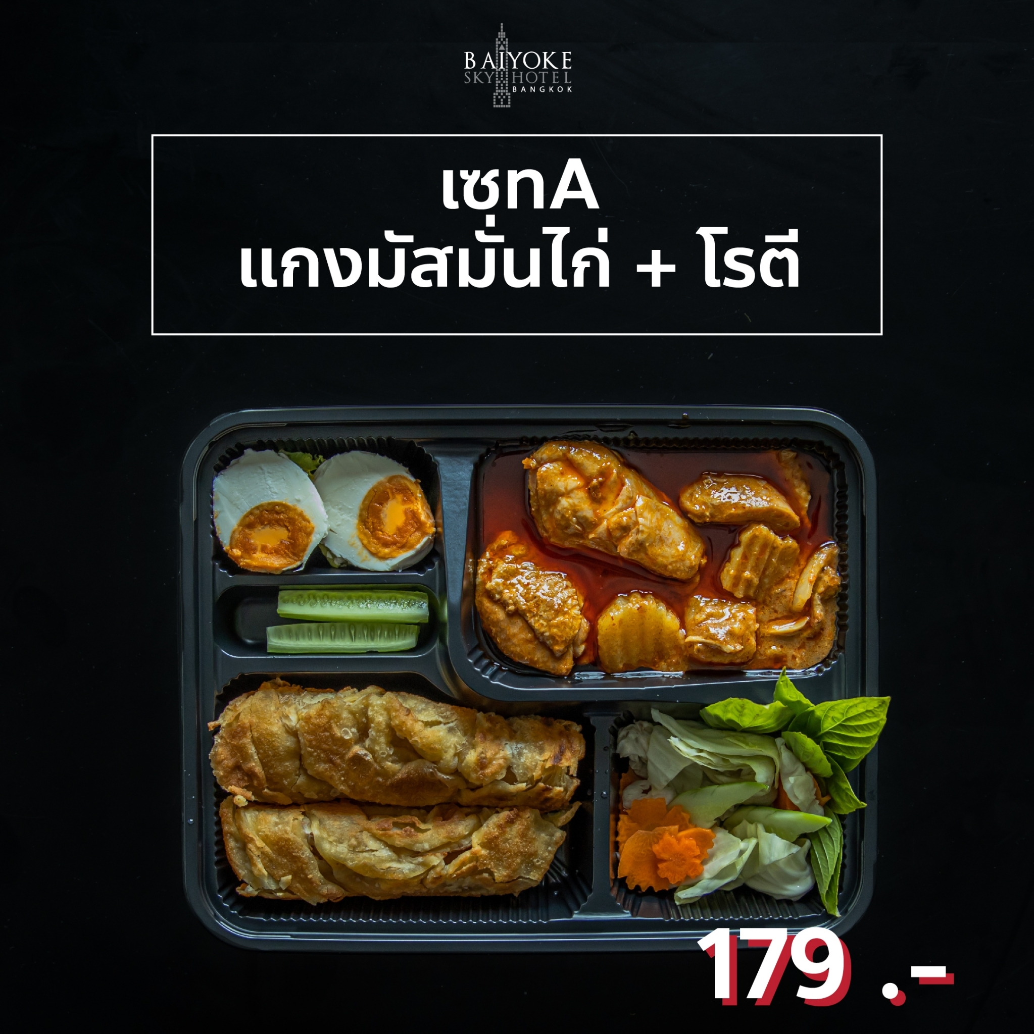 SET A บราวนี่, ขนมปังไส้ไก่, แยมโรลสตรอว์เบอร์รี่, เค้กสังขยาหน้านิ่ม, ทาร์ตผลไม้, แซนวิชแฮมชีส, พายซอสเซสโรล, ขนมชั้น, วุ้นดอกไม้ 149.-