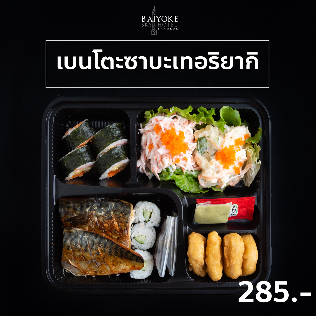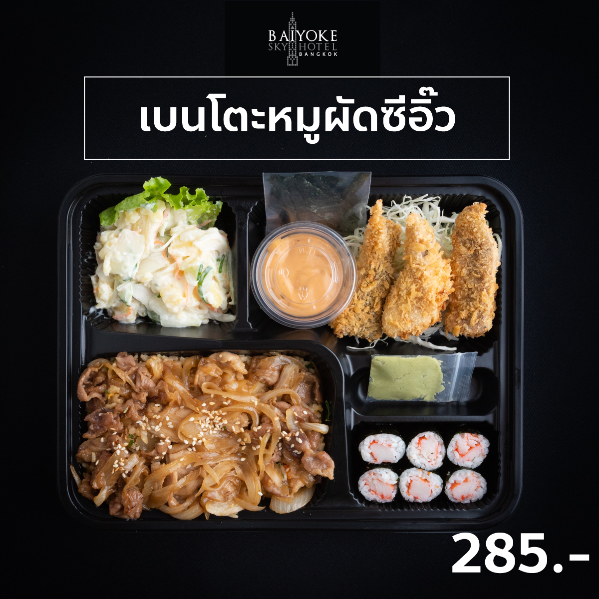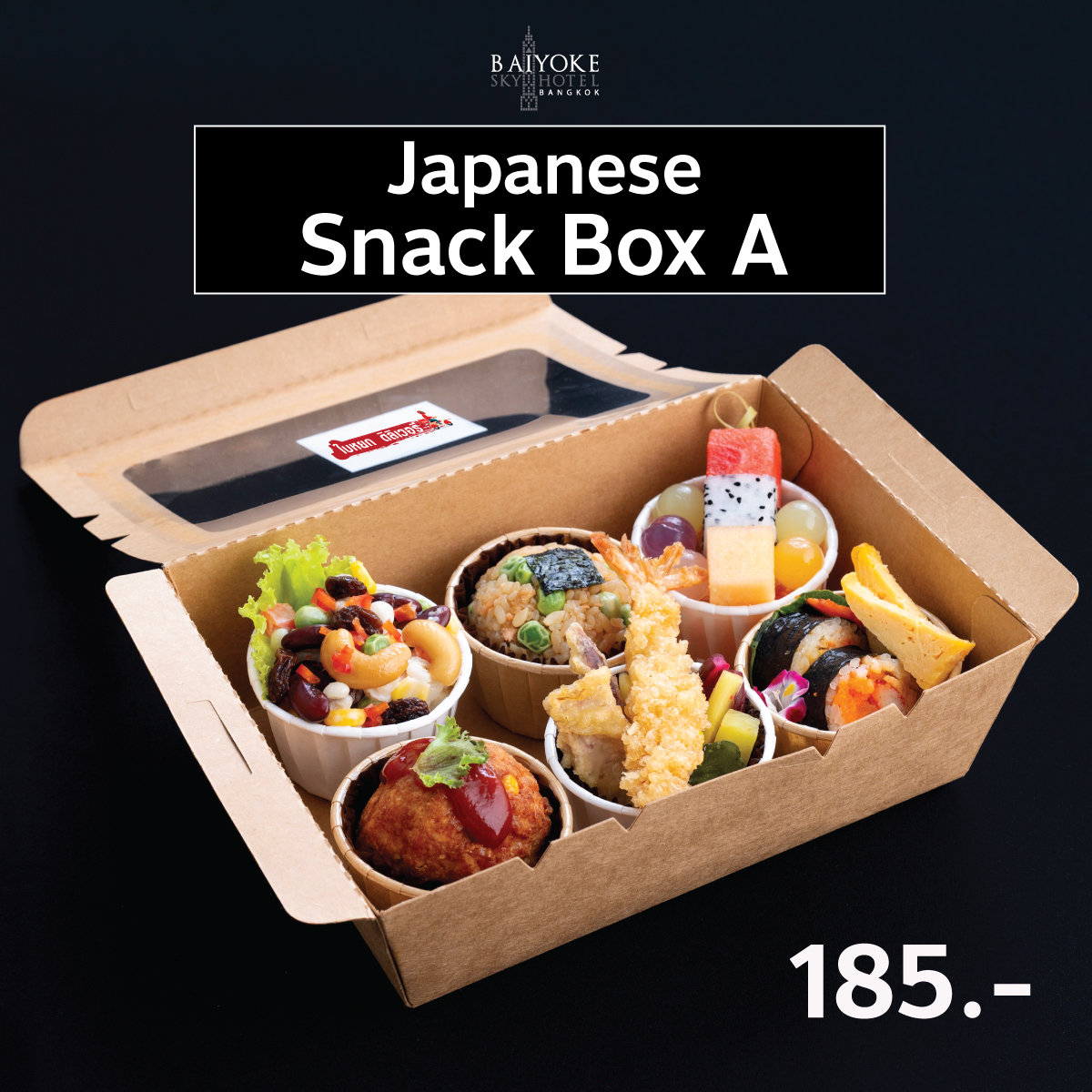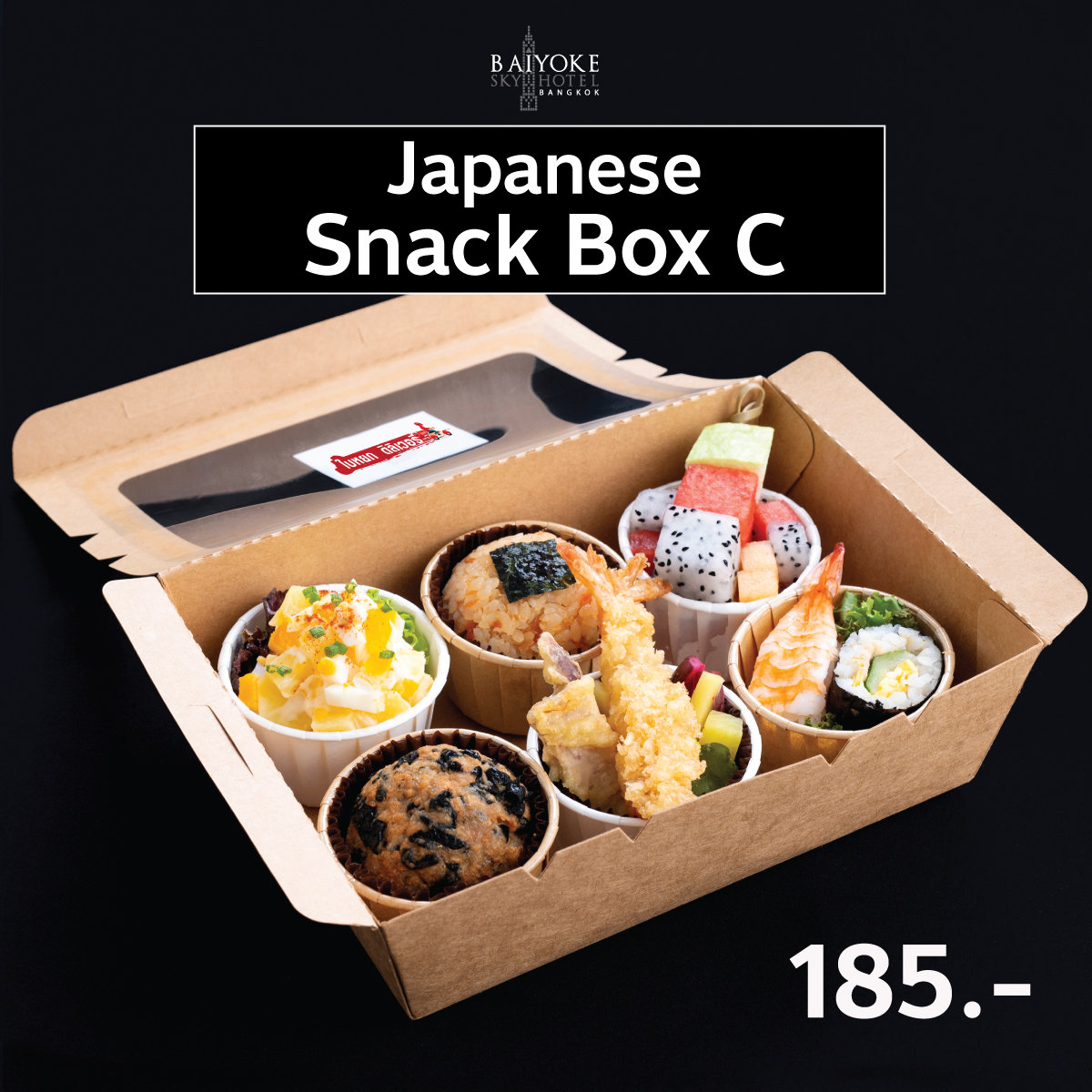 Japanese Snack Box 185 บาท SET C สลัดมันไก่สับ ข้าวปั้นแซลมอน วุ้นผลไม้+ผลไม้ มีทบอลหมู+สาหร่าย เทมปุระรวม+ผักดอง ข้าวห่อสาหราย+เอบิชูชิ