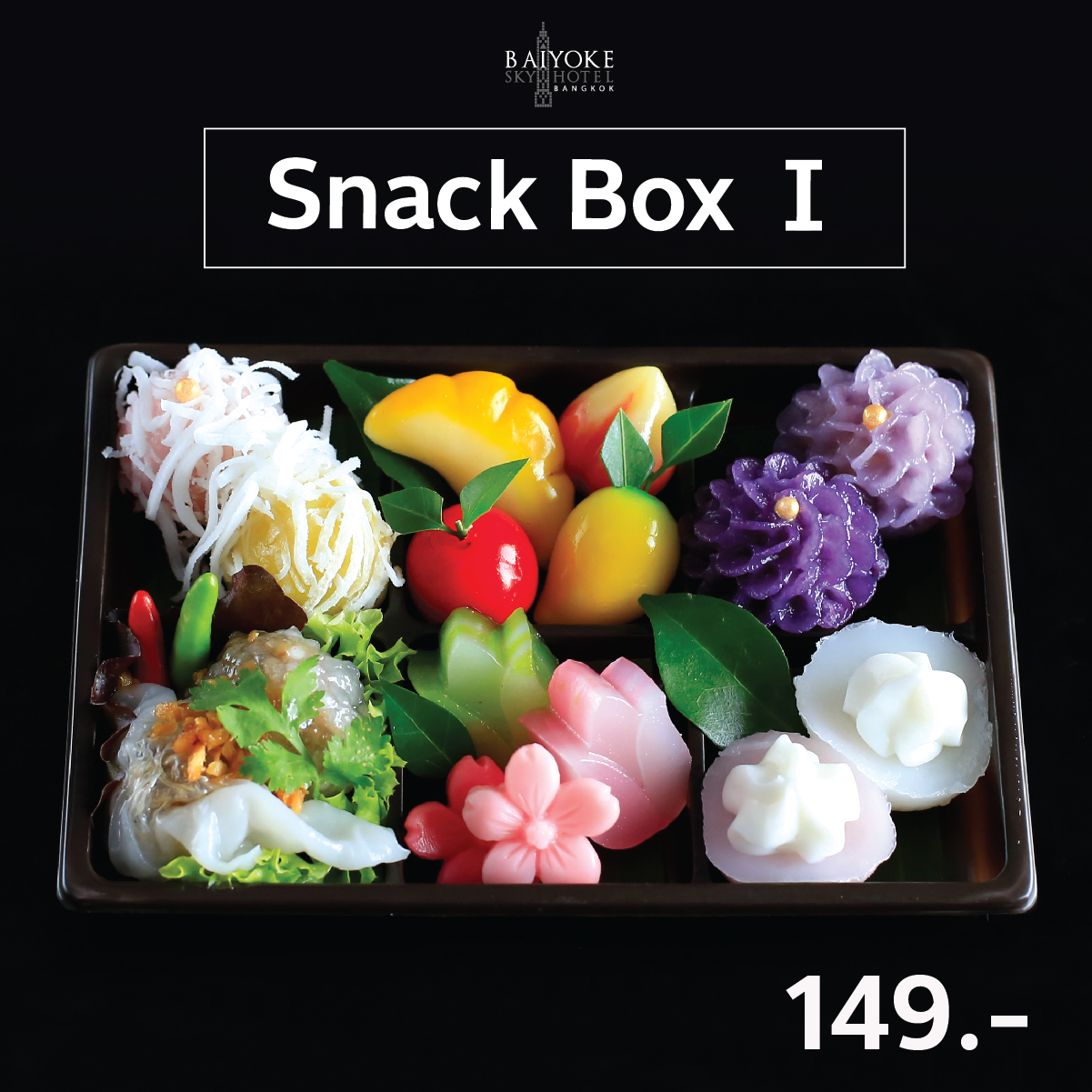 SET I ขนมต้ม, สาคูไส้หมู, ปากหม้อไส้หมู, ลูกชุบ, ขนมชั้น, วุ้นซากุระ, ผกากรอง, บุหลัน 149.-
