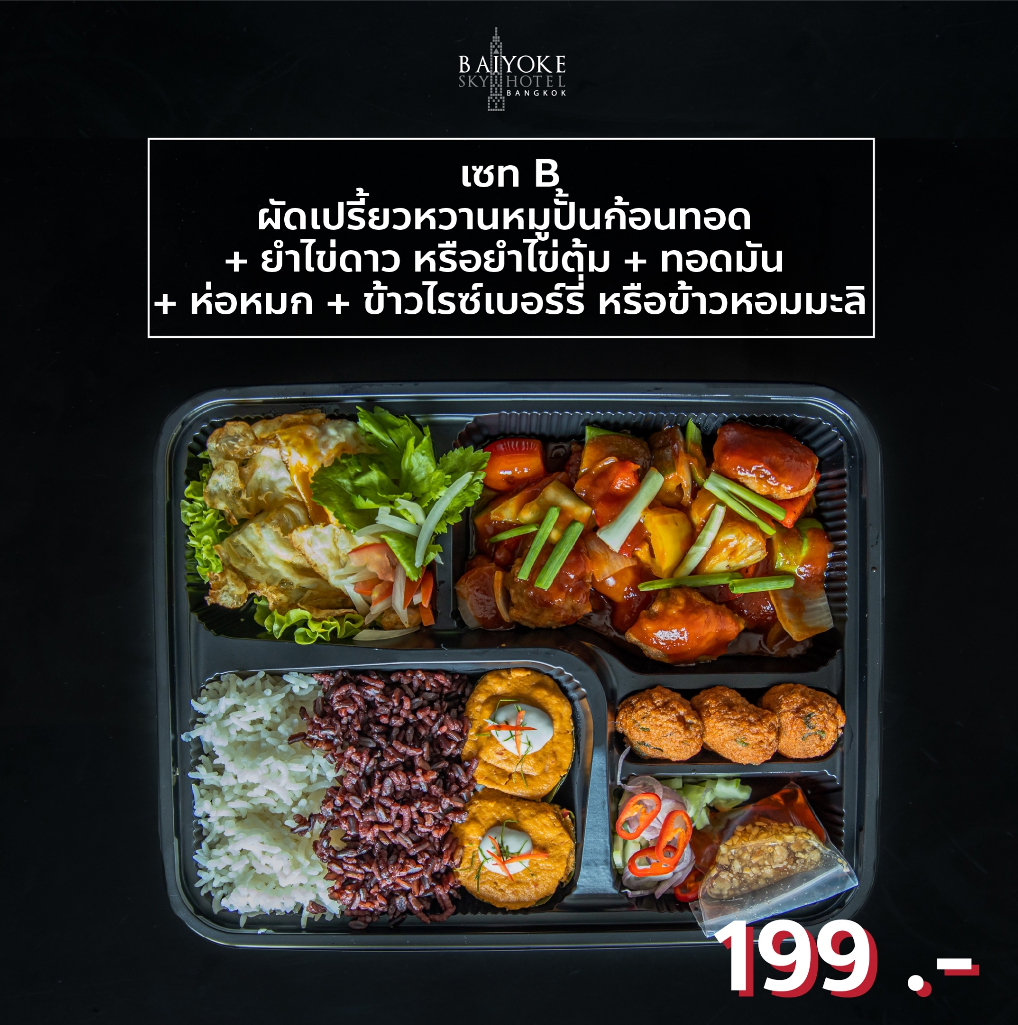 SET B คลับแซนวิช, แยมโรลสตรอว์เบอร์รี่, ขนมปังหมูหยอง, ปุยฝ้าย, พัฟไก่, เค้กสังขยาหน้านิ่ม เค้กช็อกโกแลต 149.-